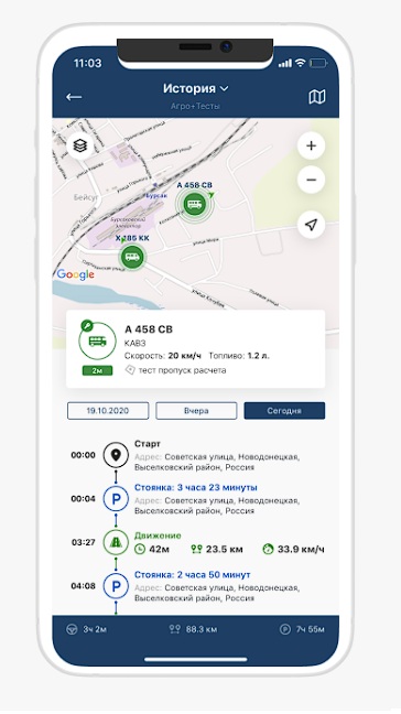 СОБЫТИЯ Информация о поездках, стоянках, сливах и заправках в хронологическом порядке с подробной детализацией.